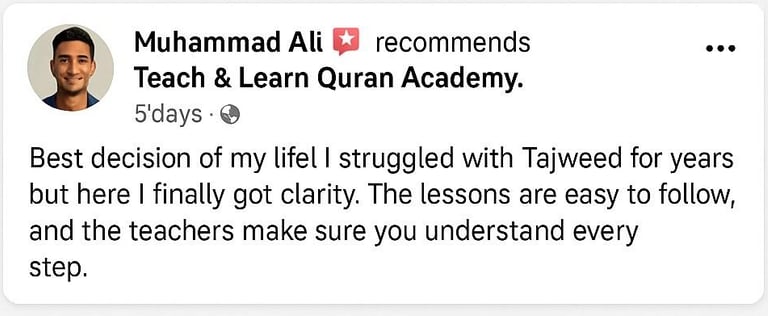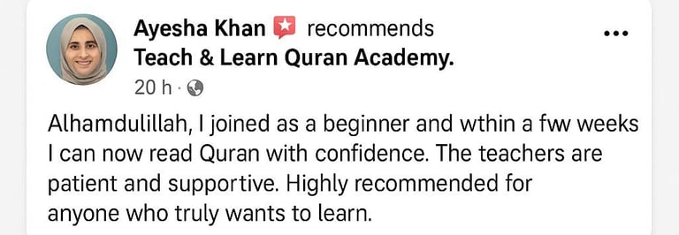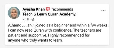 Teach & Learn Quran was founded with the belief that the Qur’an is not only to be read, but to be lived and cherished. With years of experience in Quran teaching, we provide personalized guidance in recitation, memorization (Hifz), and understanding of the Qur’an.