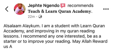 Welcome to Teach and Learn Quran academy! We are truly grateful for your interest. Our professional Quran trainers are committed to ensure your progress and guaranteed improvement in this journey.